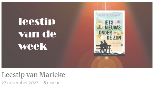 Op de Hebban Fabulous Feelgood groep was 'Iets nieuws onder de zon' door Marieke Schreers getipt als Leestip van de week!