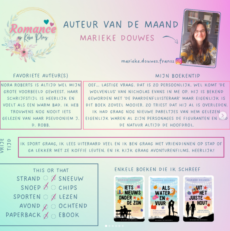 Vandaag dus Marieke Douwes-Fransz in Zondags praat. Een auteur die wij allemaal iets beter willen leren kennen. Lezen jullie weer gezellig mee? Een fijne zondag!